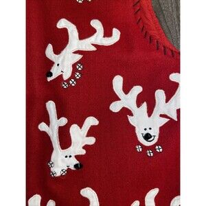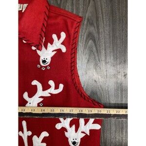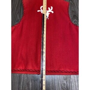 Life Style Red Christmas Vest Reindeer Appliques Full Zip Wool Women's LARGE