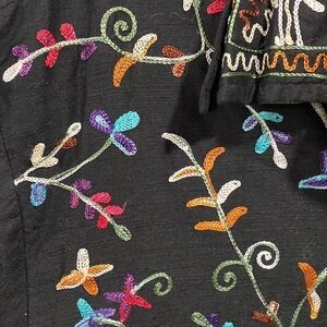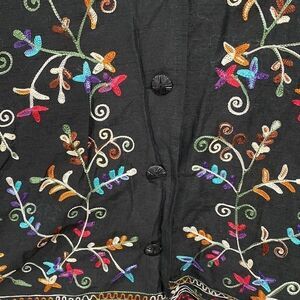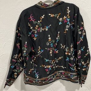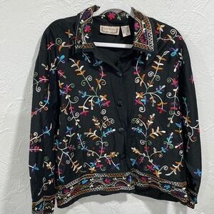 Life Style Retro Artsy Black Silk Blend Embroidered Grannycore Jacket Size Med