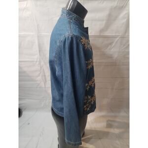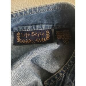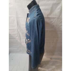 Life Style Shirt Womens Large Blue Chambray Long Sleeve Floral Embroidered