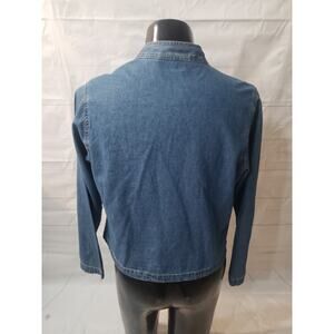This Life Style Women's Large Blue Chambray Long Sleeve Floral Embroidered Shacket is a stylish and versatile addition to any wardrobe. Made from cotton denim, this shacket features a collared neckline, button closure, and a beautiful floral embroidered pattern. The vintage look adds a touch of charm, perfect for casual occasions in any season. With a regular fit and casual sleeves, this shacket from Life Style is sure to become a go-to piece for any fashion-forward woman.