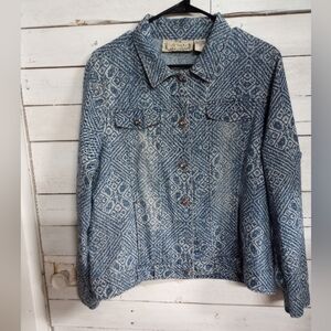 Life Style Women's Large Geometric Print Button-Front Blue Jean Jacket Trucker.