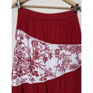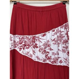 Life Style Women’s Maxi Skirt Sz XL Red White Tiered Ruffle Gypsy Boho Peasant