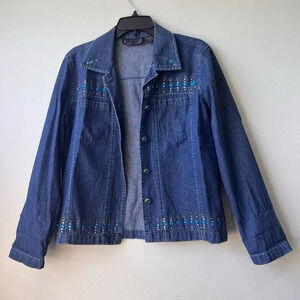 Life Style Womens Vintage Button Blue Denim Jacket Size M