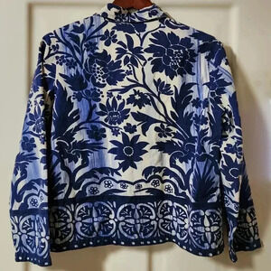 Life Style Y2K Boho Button Up Jacket Women’s Medium Blue Beige Floral Cotton