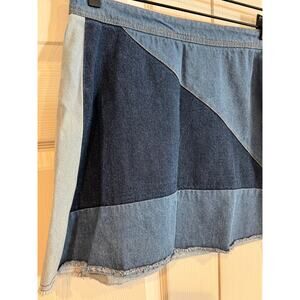 Life in Progress Blue Denim Patchwork Mini Skirt