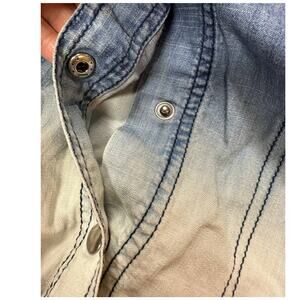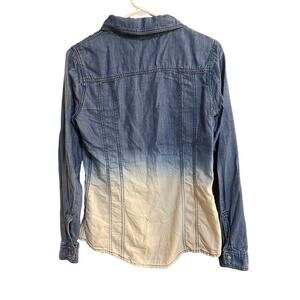 Life in Progress Womens Snap Front Ombre Long Sleeve Blue White Shirt Small