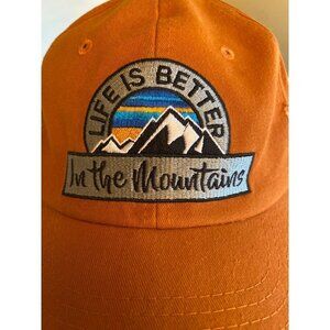 Life is Better in the Mountains Orange Distressed Hat Cap Adjustable