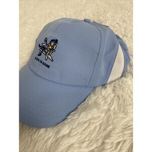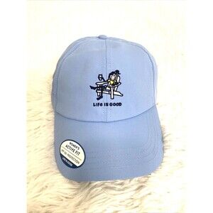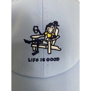 Life is Good Baseball Hat Active Fit Women's UPF 50 Protection Blue Sky one size adjustable back new please note that it has a tiny hole where the tag is hanging and little marks on side not noticeable please see pictures for more details