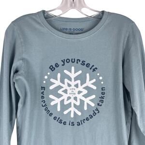 Life is Good Be Yourself Crewneck Graphic Tee Blue Junior Size XL