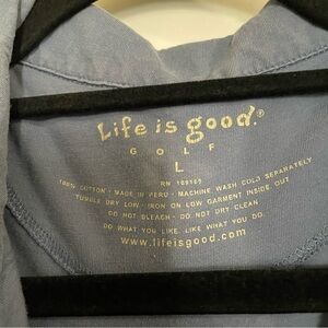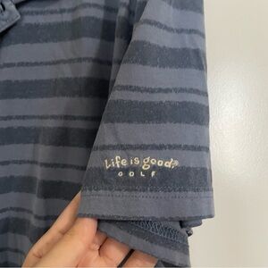 Life is Good blue stripe golf short sleeve polo