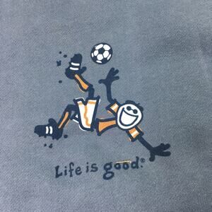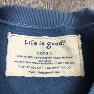 Life is Good Boys Pullover Sweatshirt Fleece Crew Neck Graphic Logo Blue Large