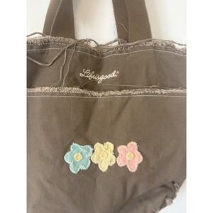Life is Good tote bag in brown with a cute floral design—gives off total Y2K vibes! Roomy and perfect for everyday use, errands, or as a casual purse.