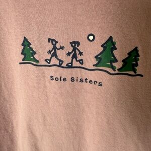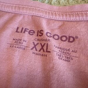 Life is Good women’s Crusher t-shirt. Size XXL. Light purple with "Sole Sisters" graphic on the front. There are a few spots where the stitching has pulled on the hem; however, the hem is still intact - see photo. Otherwise in excellent condition.