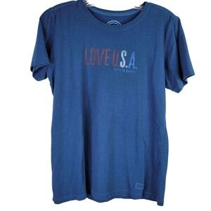 Life is Good Crusher Womens Small Short Sleeve T-shirt Blue USA Patriotic