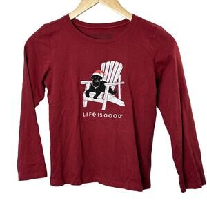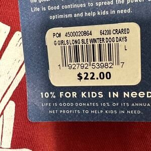 Life is Good Dark Red Winter Dog Days L/S Crusher Tee Shirt Girl's Large 10 NEW