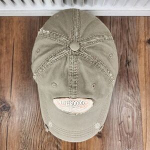 Life is Good Distressed Strapback Hat Cap Gray 'Optimism Can Take You Anywhere'