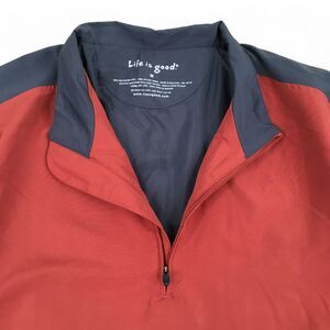 Life is Good Golf Windbreaker Shirt Mens Medium Red Grey Short Sleeve Good Tech