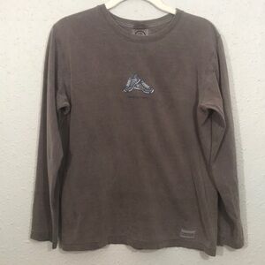 Life is Good “Gotta Run” Brown Long Sleeve Screen Print T-Shirt size S