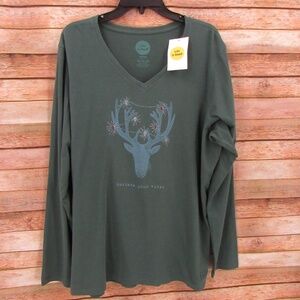 Life is Good Green V-Neck 'Radiate Good Vibes' Long Sleeve Tee Women's XXL