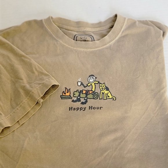 Life is Good Happy Hour Campfire Dog Smiley Jake Hot Drink SS M