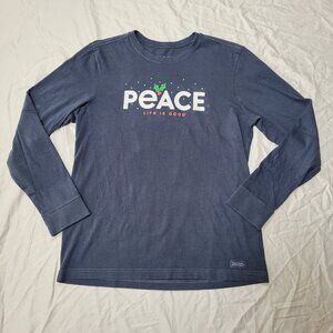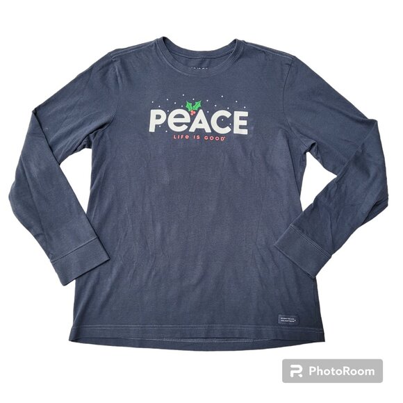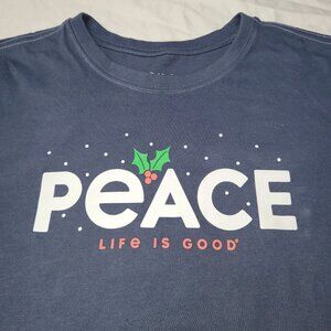 Life is Good Holiday Shirt Long Sleeve Peace Mistletoe Soft Cotton Crewneck Medium