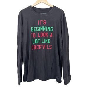 Life is Good Its Beginning To Look A Lot Like Cocktails Gray Long Sleeve Crusher Shirt Sz L