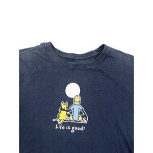 Life is Good Jake Rocket Moon T Shirt Blue Mens Large Man’s Best Friend Man Dog