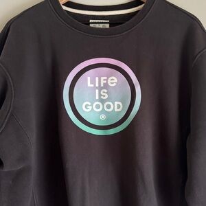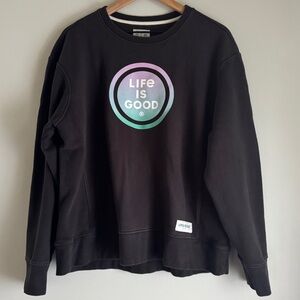 Excellent pre-loved condition black crewneck pullover sweatshirt with the “Life is Good” graphic on the front