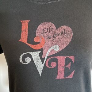 Dark gray Life is Good short sleeved tee with a Love design. 100% cotton. Size Small. Very good pre-owned condition.