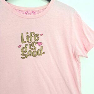 Life is Good Light Pink Embroidered Tee Size Small Women
