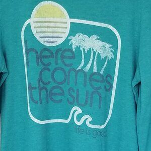 Life is Good Long Sleeve T-Shirt Size Medium Turquoise Here Comes the Sun