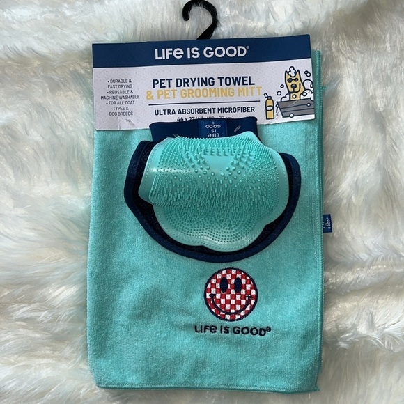 🆕 Life is Good Microfiber Pet Towel and Grooming Mitt Set