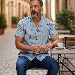 Life is Good M's Outdoor Cowboy Skeleton Pattern Camp Shirt