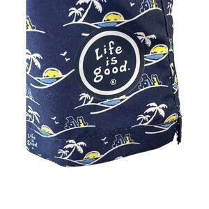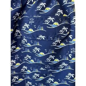 Life is Good Navy Blue Island Boy & Dog Sunset Print Swim Trunks Lined Sz 6 NEW