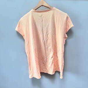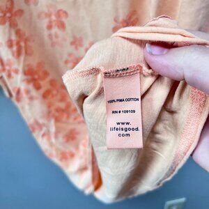 Life is Good Peach Floral Print V-Neck T-Shirt- Size L