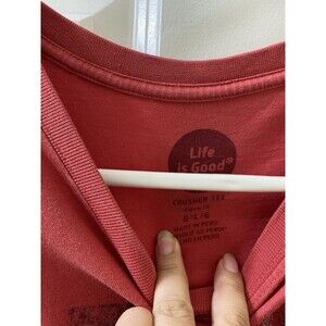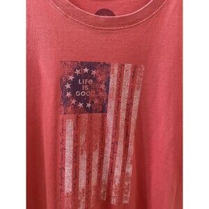 Life is Good Shirt Mens Large Red Short Sleeve Crusher American Flag Casual