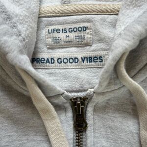 Life is Good Simply True Full Zip Fleece Hoodie Gray Spell Out Womens Medium