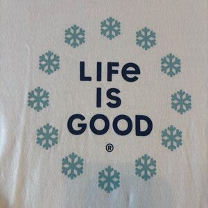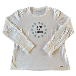 Life is Good Size L Long Sleeve Crew Neck Shirt Top White Snowflake Print Cotton