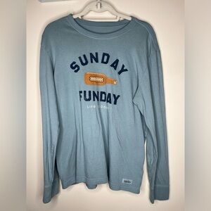 Life is Good Sunday Funday Long Sleeve Football Theme Shirt Size Medium Blue