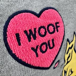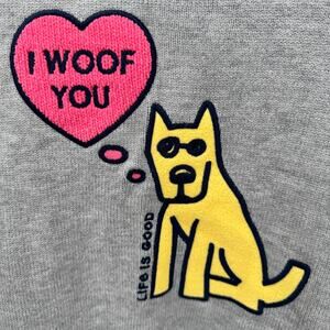 Life is Good Sweater Womens Large Gray I WOOF YOU Dog Embroidered Soft Knit