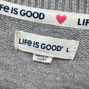 Life is Good Sweater Womens Large Gray I WOOF YOU Dog Embroidered Soft Knit Long Sleeve Pullover COMFY