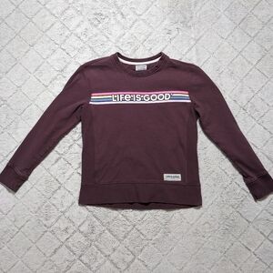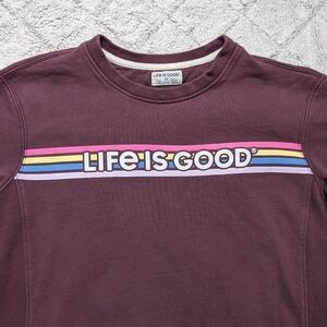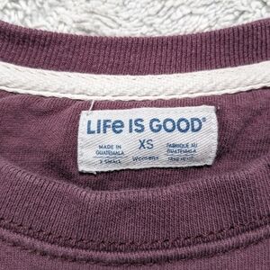Life is Good Sweatshirt Women's XS Purple Retro Crew Neck Long Sleeve Cotton