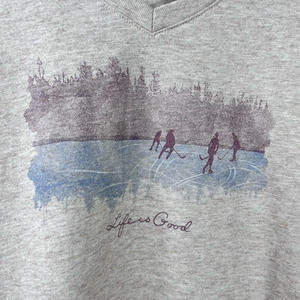 Life is Good Tan Ice Hockey Theme V-Neck Long Sleeve T-shirt Womens Large