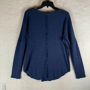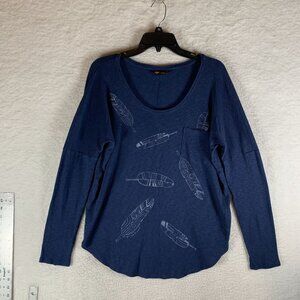 Life is Good Thermal Top Womens Large Blue Cotton Feather Print Relaxed Fit 9619