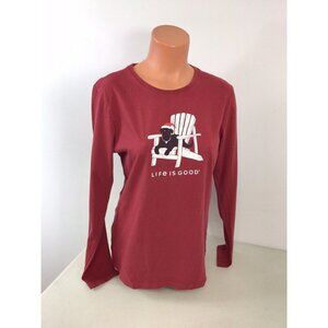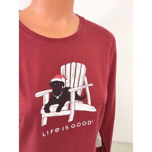 Life is Good Top Black Lab Santa Hat Womens Medium