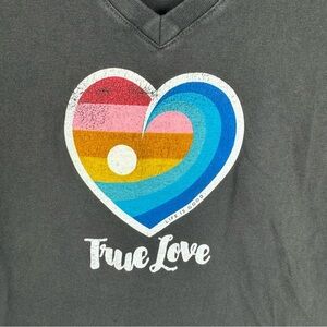 Life is Good t-shirt size XS. Dark gray, v-neck. True Love ocean wave graphic. Good condition, slight fade. Smoke free home.