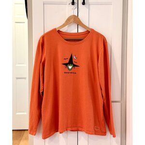 Life is Good Vintage Long Sleeve T-Shirt Good Witch Halloween Orange Size XL