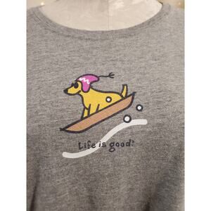 Life is Good Vintage Womens Sledding Snow Dog Long Sleeve T-Shirt Size L Winter