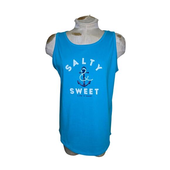 Life is Good Women High-Low Crusher Lite Tank Salty & Sweet Blue Medium NWT