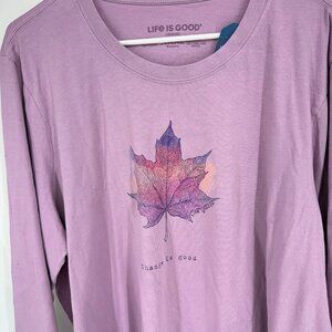 Life is Good Women XXXL Long Sleeve Crusher Tee Shirt Purple Leaf Change is Good